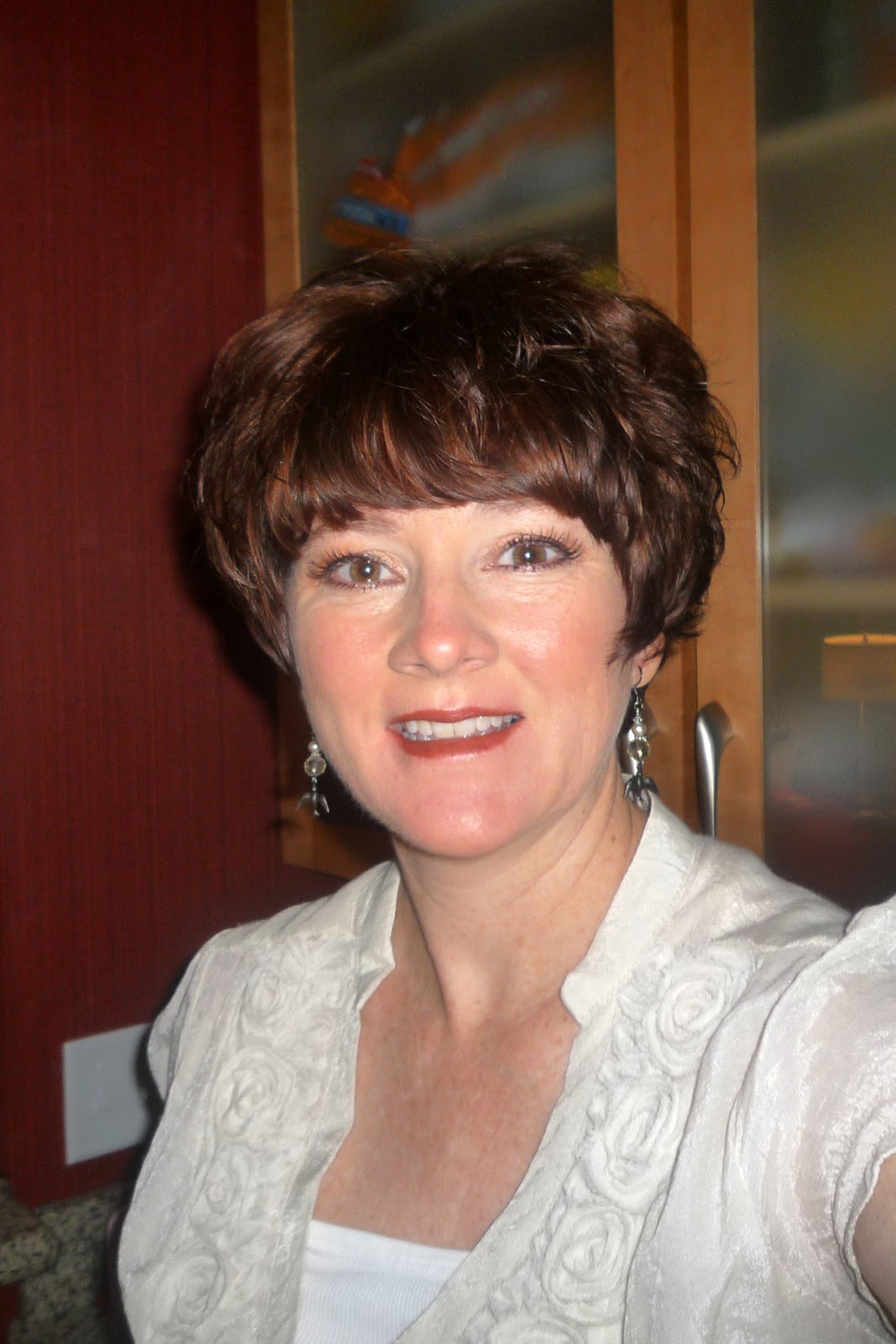 The biggest event this week for me was cutting off all of my hair. I did it AND I love it. I failed to take my camera with me to the salon. The pile of hair was huge! I was a little bit nervous but totally confident in my decision. The nervous part came from knowing what I wanted but not being able to find a picture of the exact look. I spent about 20 minutes with the colorist and stylist and together we put together what I ended up with. I will say it again, I love it. I actually cried when the hairstyle was cut, it was perfect and Annie had hit the mark. The color was a bit scary, it was soooooo dark while setting. It almost looked black but when we rinsed, dried and styled I knew we had made some good choices. It took three different shades of copper to achieve the blended look I have. I can't say that this was a cheap haircut...it wasn't! The price tag was $250.00. (this included : haircut/style, color (three), 2 shampoos, wax creme and a new brush and tips for each of the young women that helped me). I have never spent this amount on my hair but I knew I needed it to be done right and I feel it was. Having a great experience with something this personal (I have had long hair most of my life, it was time to let it go and stop hiding behind my long hair) to me was priceless.....